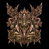 A collage work of mine, combining snake and skull elements, and a facial figure of a Japanese knight with his helmet armor, a ghostly knight dashing and his angry face and with a touch of golden nuance to make it look stronger and radiant ...