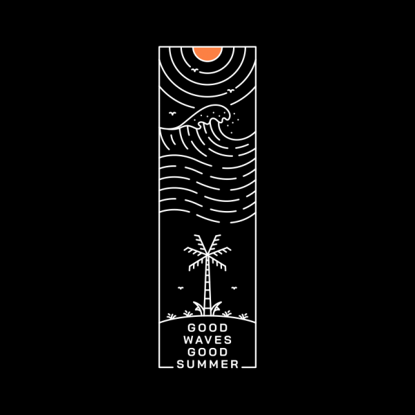 Good Waves Good Summer is a monoline illustration that is suitable for apparel or merchandise about summer, vacation, holiday, beach, surfing, surfboard, waves, surfer, sport, travel, sea, tropical, good vibes, surf, hawaii.