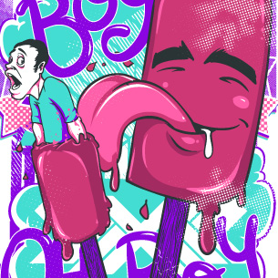 Goodie Boy graphic design template in vector format, featuring detailed ice-cream licking another ice cream now available for Adobe Illustrator, Adobe Photoshop and Corel Draw and can be used for digital printing and screenprinting .
