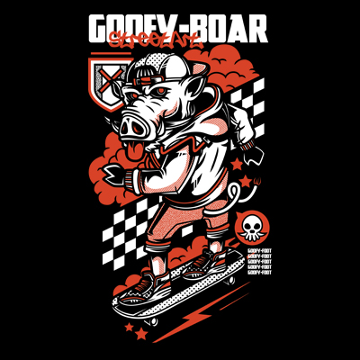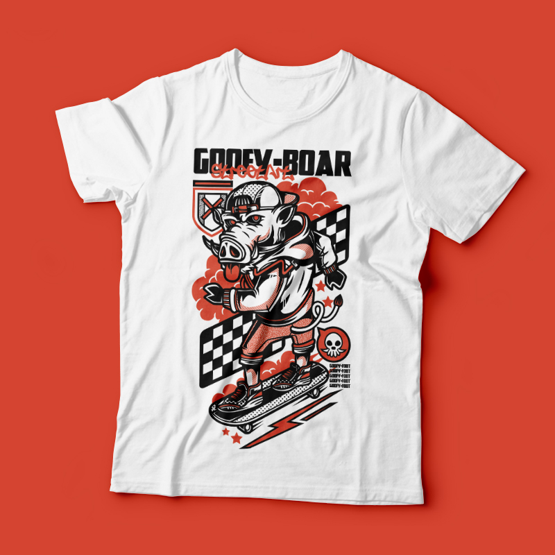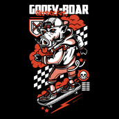 Goofy-Boar a Character Design that was made in adobe illustrator. Based on vector file , easy to resize and edit. File features AI, EPS, and PNG all in zip, CMYK color mode and 3 color (2 color if in white/black shirt). Can be used for digital printing and screen printing.