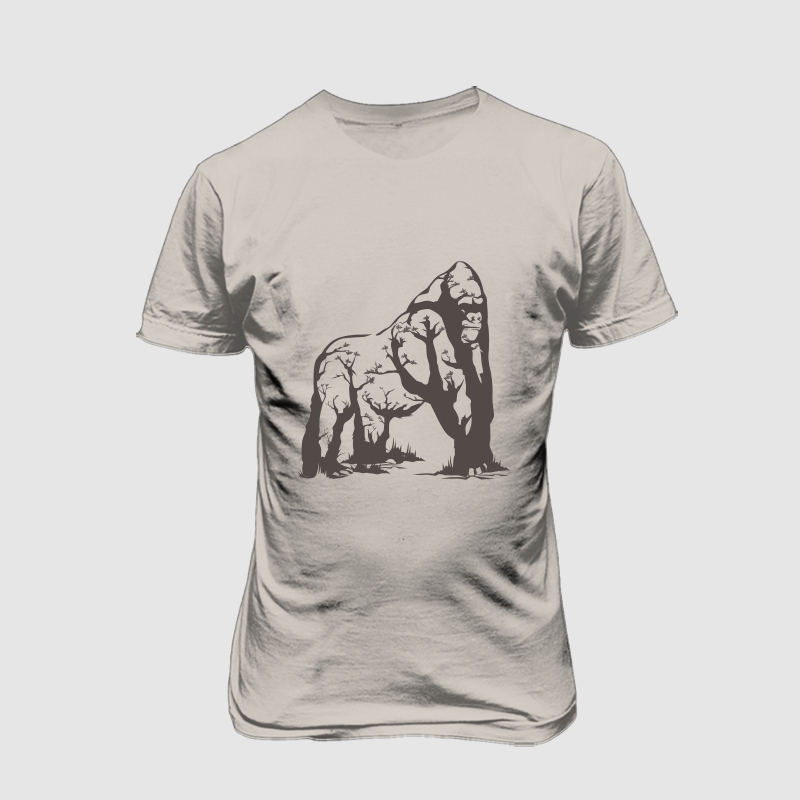 "Gorilla ecology" is a vector illustration t-shirt design, with 1 color available on Corell Draw X4 file, Adobe Illustrator file, EPS, Transparent Back Ground PNG file, PDF file. It can be used for digital printing and screen printing.