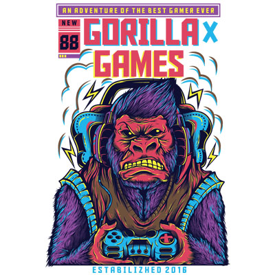Gorilla Games with Urban colorful and joyful style. Cool vector design that looks funny and joyfull. Based on vector file, easy to resize and edit. File features AI, EPS, and PNG all in zip, CMYK color mode and 6 colors print. font link included on readme file. Cheers!