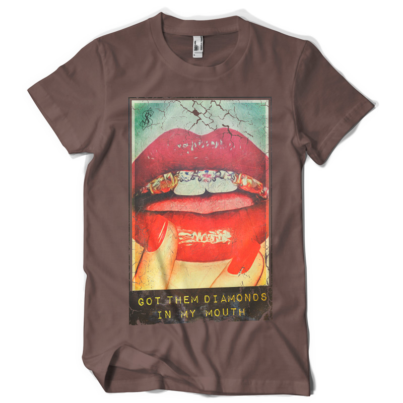 "got them diamonds" Artwork created in Adobe Photoshop. The file available for the client upon purchase and download are 1 layered file in TIFF (with transparency) format designed for DIRECT TO GARMENT printing. Also available upon request is 1 file in PDF format, layered, designed for the SCREEN PRINTING.