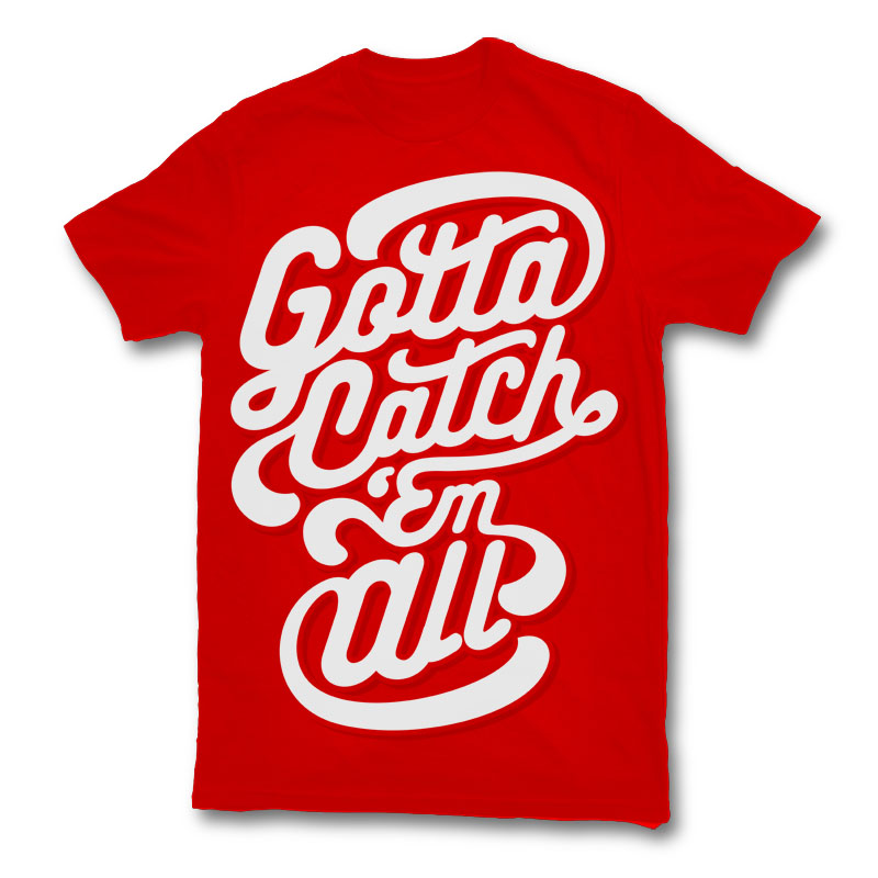 Gotta Catch Em All Typography Design created with CorelDraw .1 colour print, AI, CDR, PSD File separated Layers. Can be used for digital printing and screen printing.