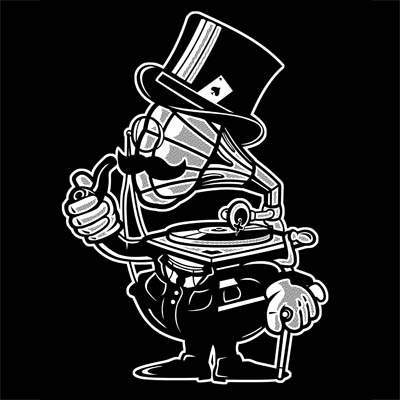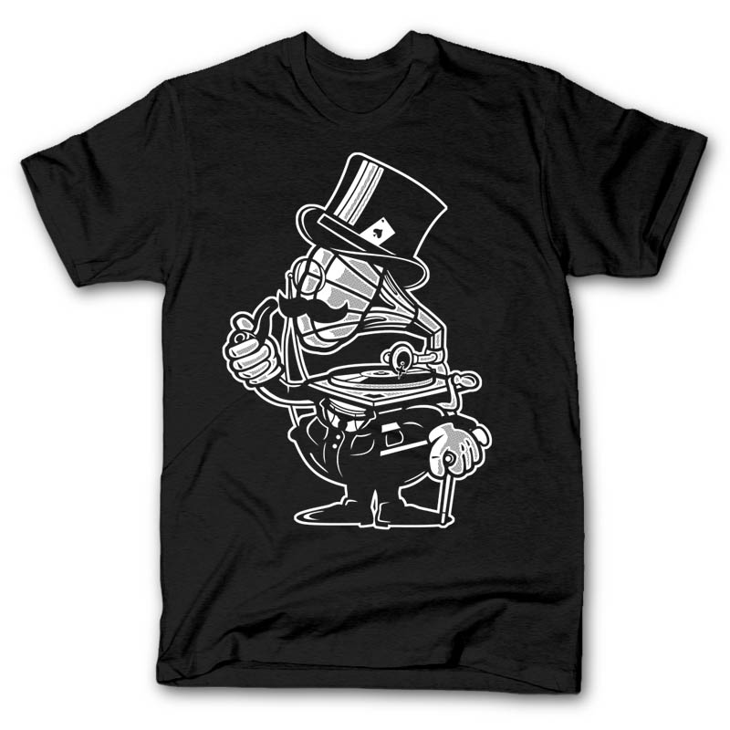 Vintage Gramophone Head Cartoon character style T-shirt design template , The file is PSD separated Layers. Can be used for digital printing and screen printing.