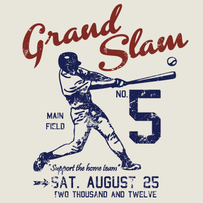 Grand Slam, Vintage Baseball illustration made by Danilo De Donno. Photoshop File with levels, Illustrator File, EPS and PDF. Sportive graphic with player, bat and ball. American Game Print.