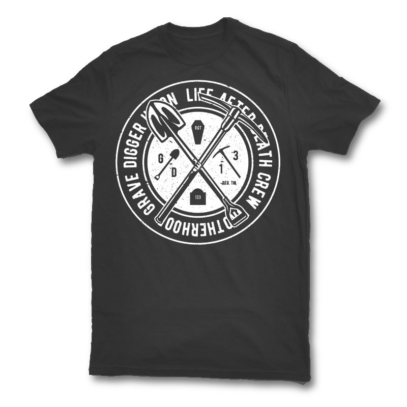 Grave Digger Tshirt Design Template based on vector files , such as AI and CDR also with PSD separated Layers file, the design has 1 color print, it can be used for digital printing and screen printing.