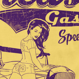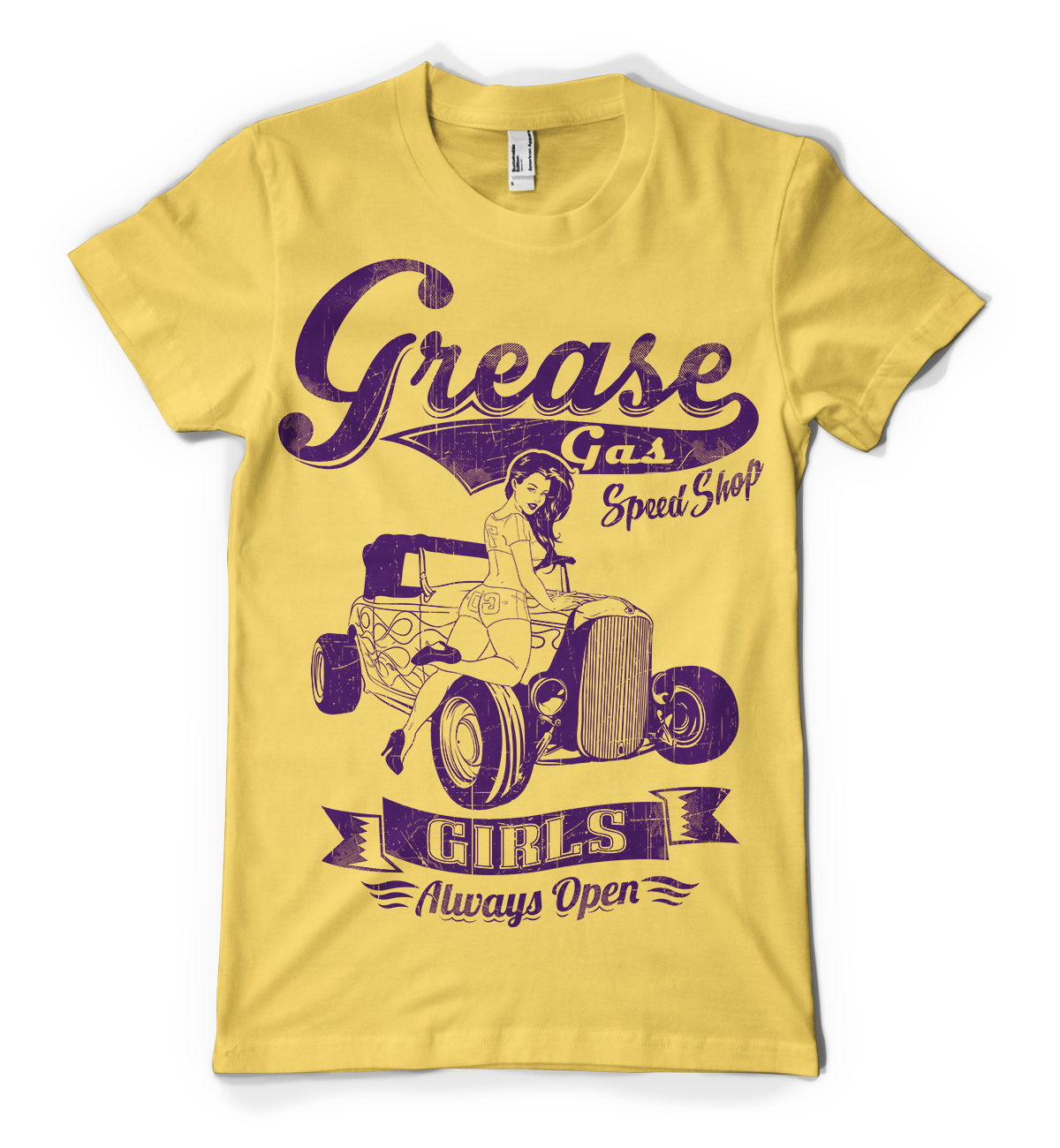 Grease t-shirt design features a detailed screen print of sexy girl on classic car now available for Adobe Illustrator, Adobe Photoshop and Corel Draw and can be used for digital printing and screenprinting .
