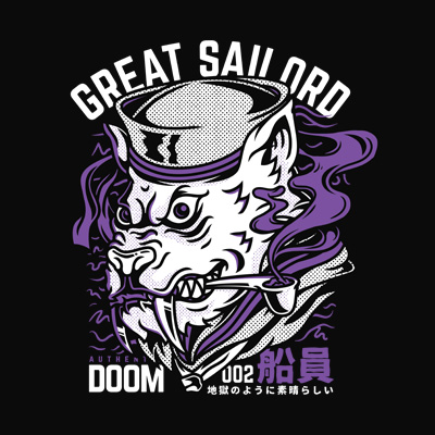 Great Sailord its a Character Design that was made in adobe illustrator. Based on vector file , easy to resize and edit. File features AI, EPS, and PNG all in zip, CMYK color mode and 3 color. Can be used for digital printing and screen printing.