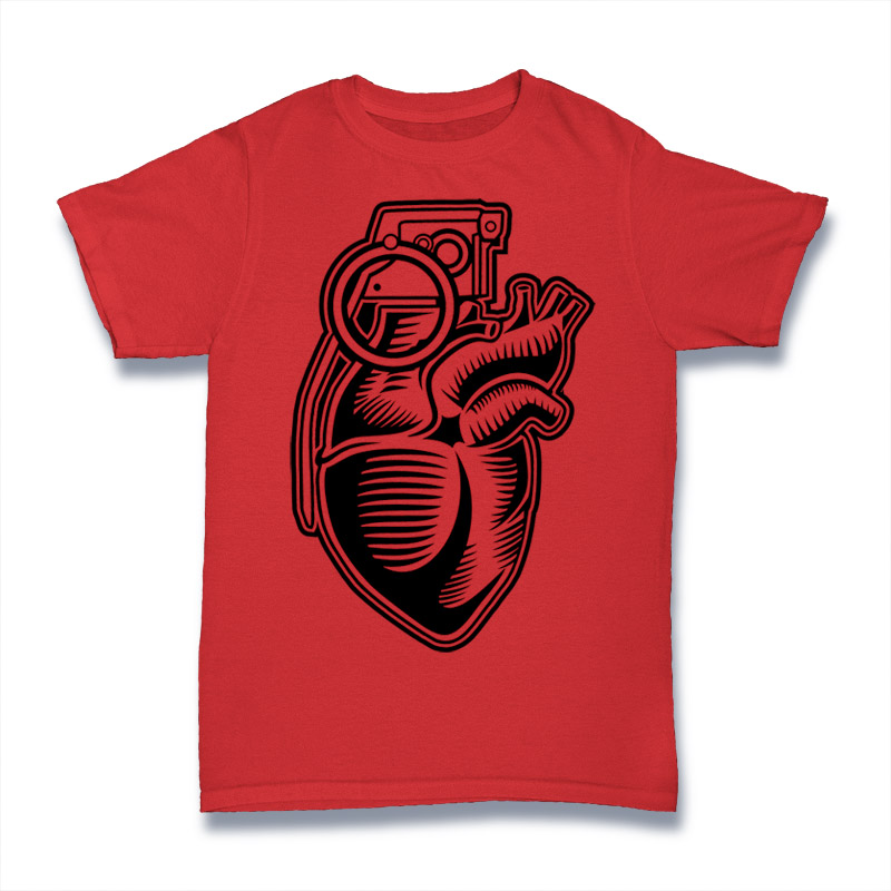 Grenade Heart Concept Template style T-shirt design template , The files are AI, CDR, SVG, EPS, PNG and PSD separated Layers. Can be used for digital printing and screen printing.