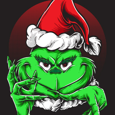 Grinchy Claus, based on vector design. This artwork is in AI, EPS formats and PNG files, ready for print. Separate color based on layer, it can be used for digital printing and screen printing, and can also be used for stickers, logos, wallpapers.thanks and enjoy !!!