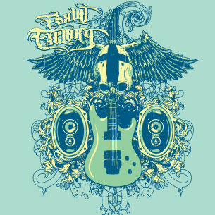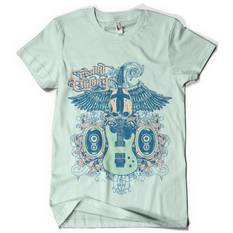 Guitar digital design in vector format, featuring detailed crossed skull and guitar now available for Adobe Illustrator, Adobe Photoshop and Corel Draw and can be used for digital printing and screenprinting .