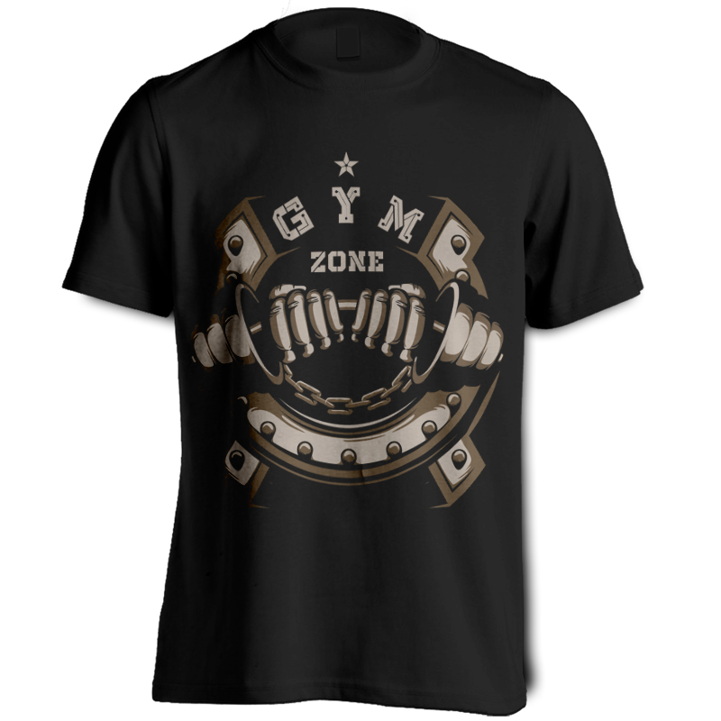 Gym zone Tshirt Design Template based on vector files , such as AI and CDR file, the design has 2 color print on black background, it can be used for digital printing and screen printing.