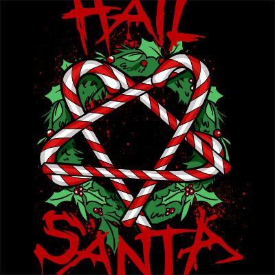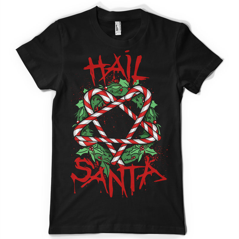 Hail Santa - T-shirt design in vector format.The artwork is featuring a funny pentagram made from Christmas candies .This is an Adobe Illustrator file, ready for print. Files included are Eps. The template can be used for digital printing and screen-printing.The file is well organised with every element on it's own layer.