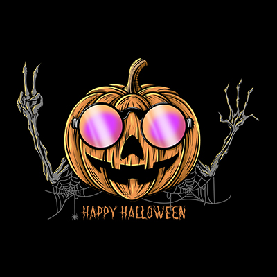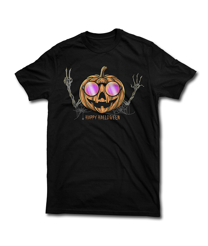 Vector illustration of Pumkin. Illustration Smiling pumkins use glasses with peace hand.