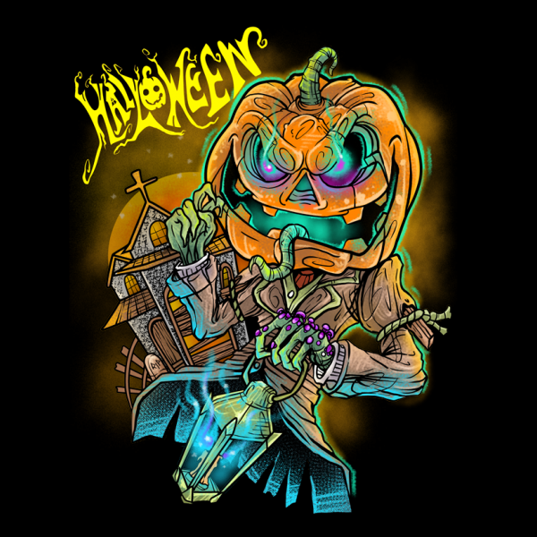 Halloween design is an illustration design. These files include PSD and PNG with a transparent background. Perfect for digital printing and screen printing.