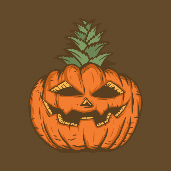 Halloween Pineapple Pumpkin is a vintage illustration that is suitable for apparel or merchandise about halloween, scary, horror, trick or treat, pumpkin, pineapple, skull, skeleton, fruit.