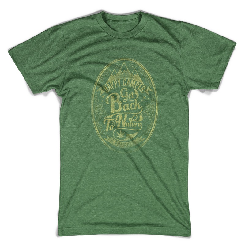 Happy camper graphic design template in vector format, featuring detailed t-shirt for all nature lovers now available for Adobe Illustrator, Adobe Photoshop and Corel Draw and can be used for digital printing and screenprinting .