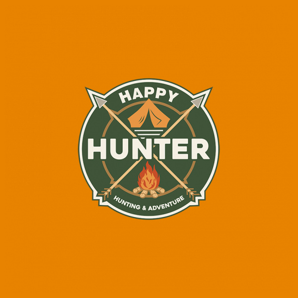 vector illustration of HAPPY HUNTER BADGE, this image is very cute for t-shirts and posters, this design is available in the form of files, CDR, AI, transparent backround PNG, JPEG, SVG, EPS, mookup not included
