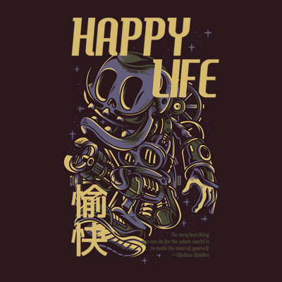 Happy Life it's a character design that was made in Adobe Illustrator. Based on vector file, easy to resize and edit. File features AI, EPS, and PNG all in zip, CMYK color mode and 4 color. Can be used for digital printing and screen printing.