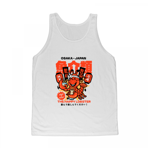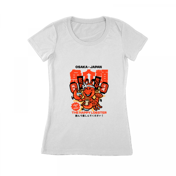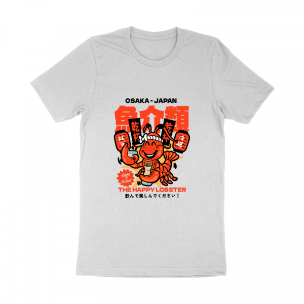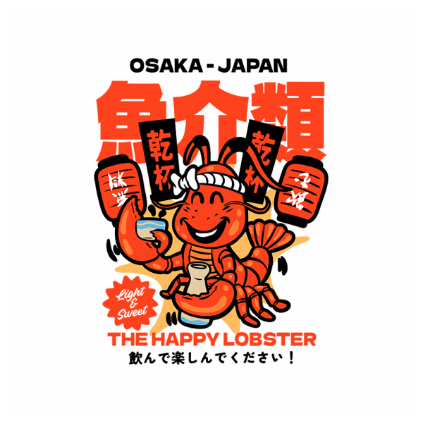 This design “ happy lobster ” is made in Adobe Ilustrator is ready for print.