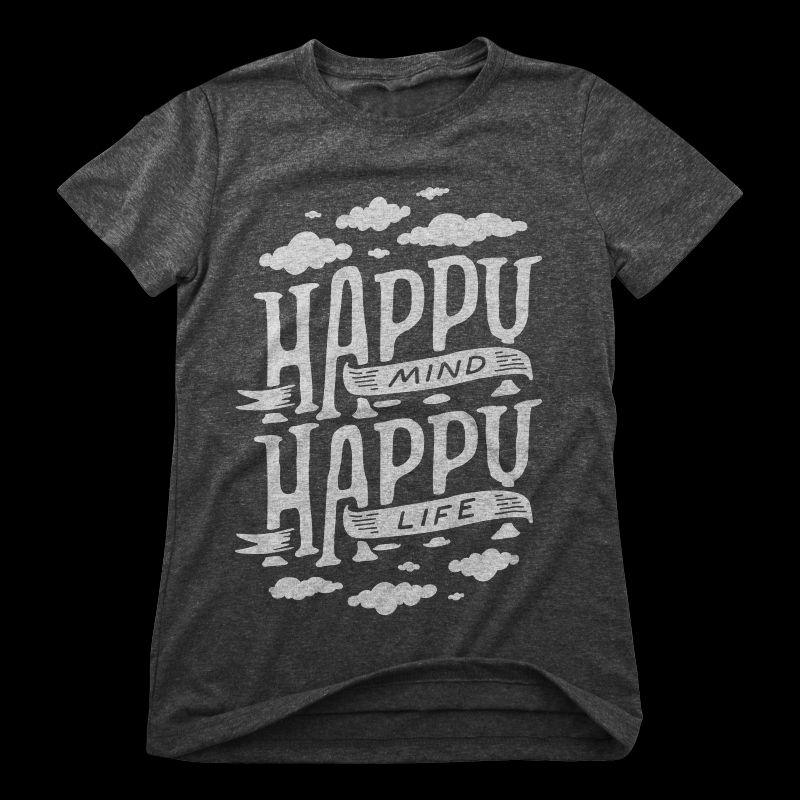 "Happy Mind Happy Life" Typography style t-shirt design.