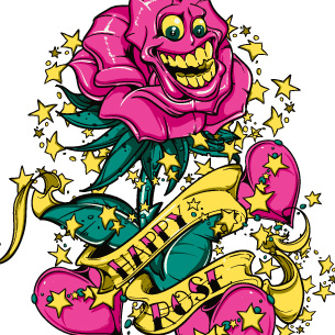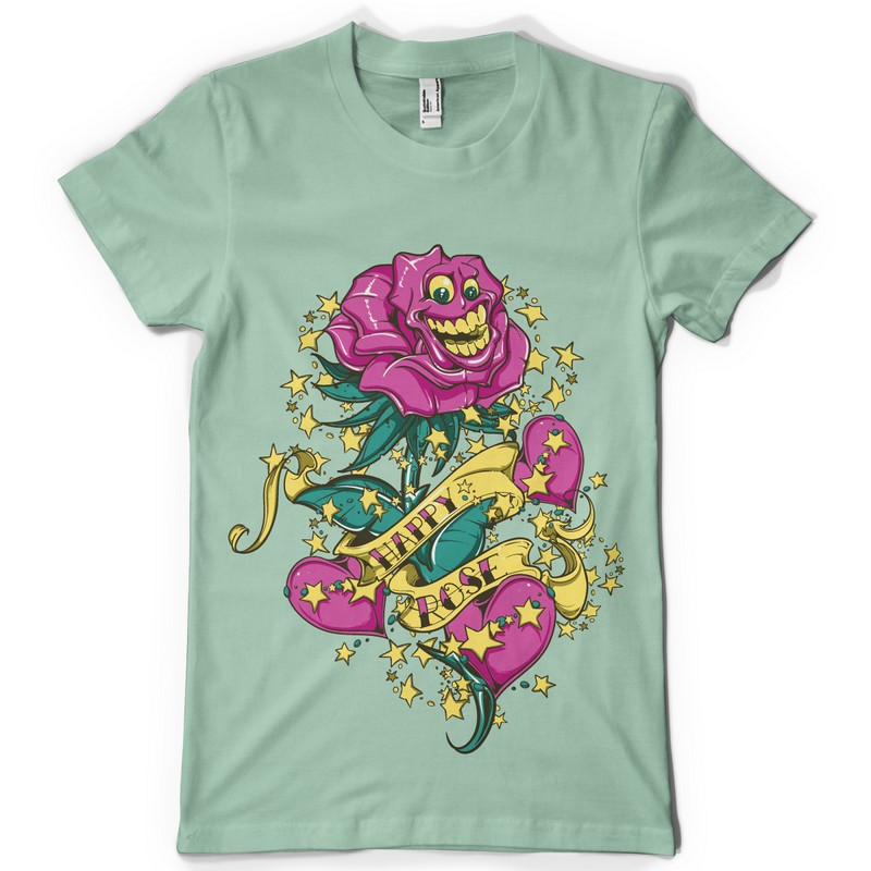 Happy rose graphic design template in vector format, featuring detailed smilling rose now available for Adobe Illustrator, Adobe Photoshop and Corel Draw and can be used for digital printing and screenprinting .