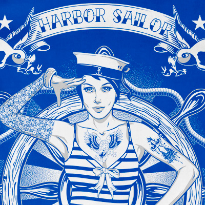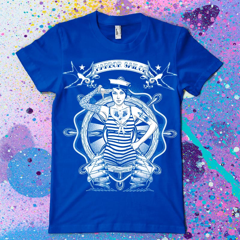 Harbor Sailor -shirt design features a pin up navy design detailed screen print now available for Adobe Illustrator, Adobe Photoshop and can be used for digital printing and screenprinting.