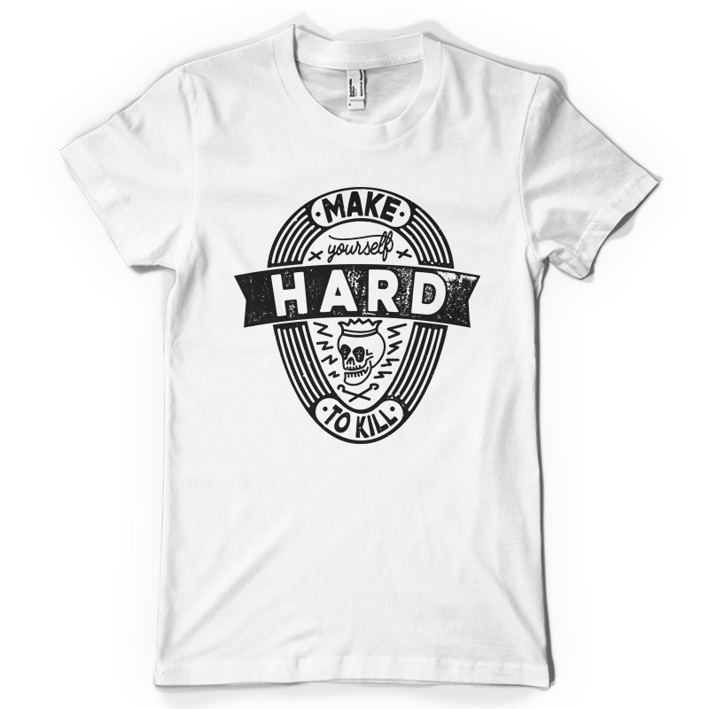 "Hard to kill" T-shirt design featuring typography style quote, with distressed details. The files available are suitable for Adobe Illustrator, Adobe Photoshop and Corel Draw and can be used for digital printing and screenprinting.
