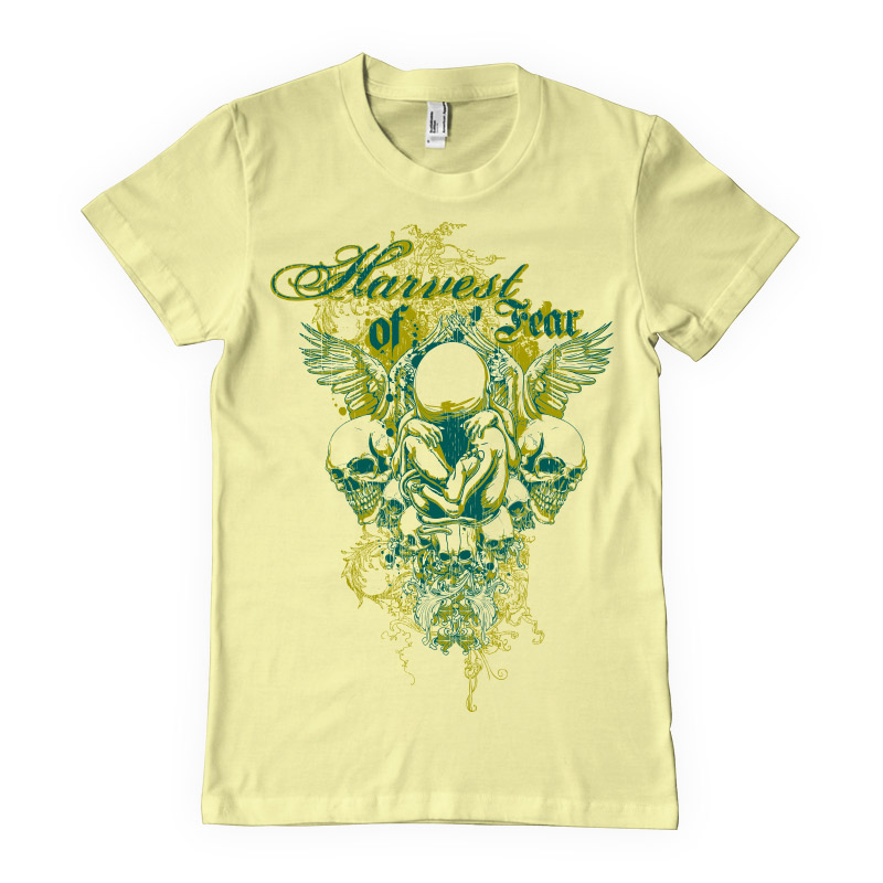 Digital artwork featuring detailed angel man arounded by skulls. Harvest of fear t-shirt template is available in vector format and can be used for digital printing and screenprinting. The file will be available for Adobe Illustrator, Adobe Photoshop and Corel Draw.