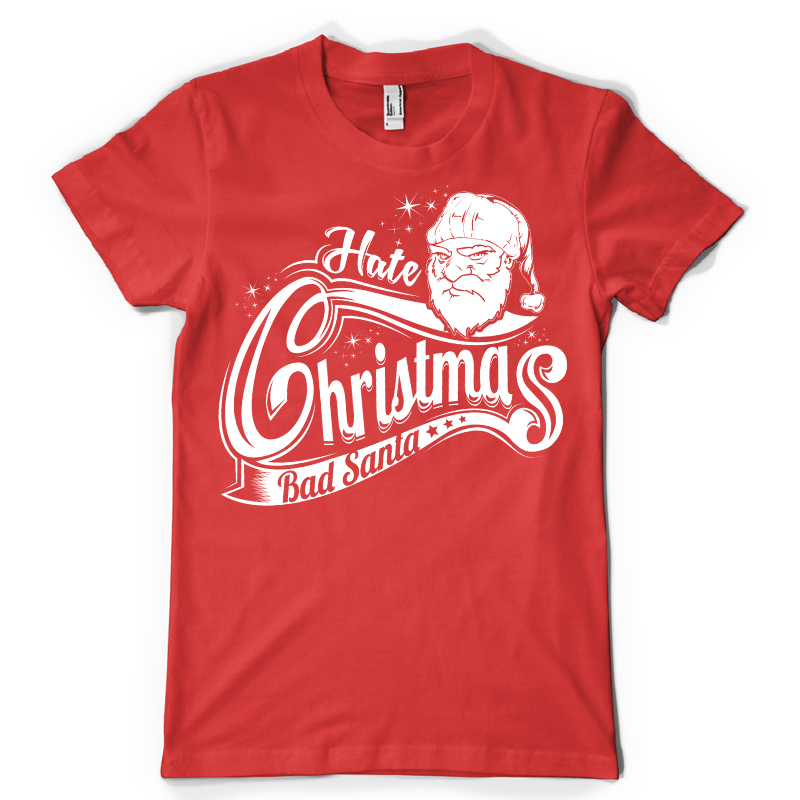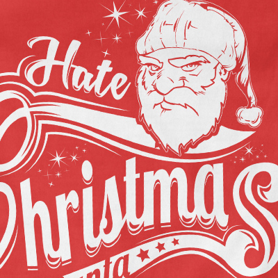 Hate Christmas in Adversity design features a Bad Santa detailed screen print now available for Adobe Illustrator, and Corel Draw and can be used for digital printing and screenprinting.