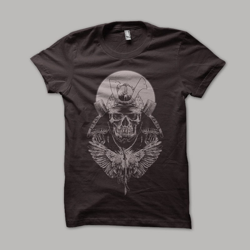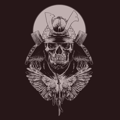 Head of Samurai is combining the skull , the helmet of samurai , wings and katana . To make it look more sinister, I used one color and accentuate the shading lines .