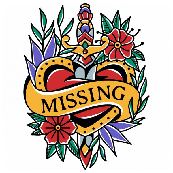 Heart Dagger Rose Tattoo Art Style.