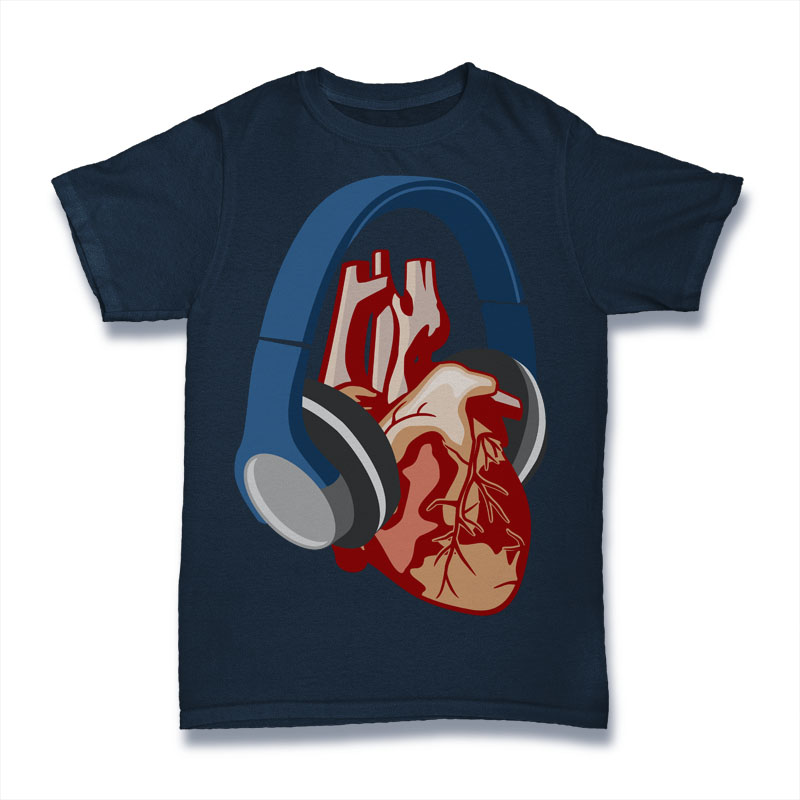 Heart Headphone Concept Artwork Tshirt Design Template .The files are CDR, AI, EPS,SVG,JPG, PNG and PSD file. Hope you like my artwork.Recommended for digital printing / DTG and screen printing