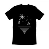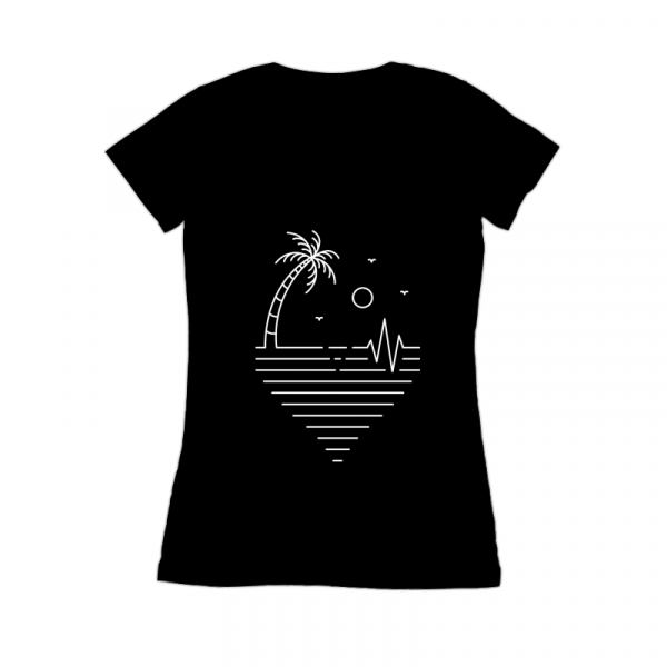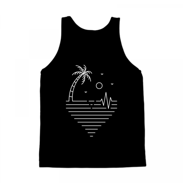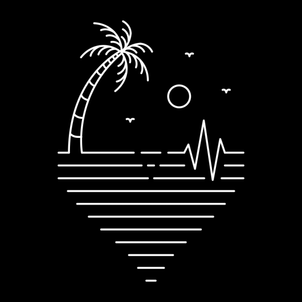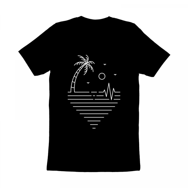 Is a vintage handdrawn illustration that is suitable for apparel or merchandise about nature, summer, vacation, holiday, beach, sea, camping, surfing, tropical, paradise, heartbeat, health, medicine, heart, pulse.