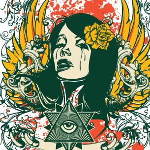 Digital design featuring detailed beautiful girl. Heartbreaker star template is available in vector format and can be used for digital printing and screenprinting. The file will be available for Adobe Illustrator, Adobe Photoshop and Corel Draw.