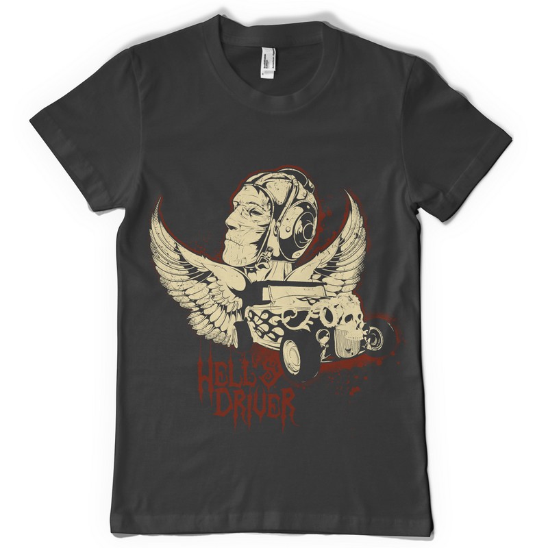 Hell driver T-shirt design template in vector format, featuring detailed old driver now available for Adobe Illustrator, Adobe Photoshop and Corel Draw and can be used for digital printing and screenprinting .