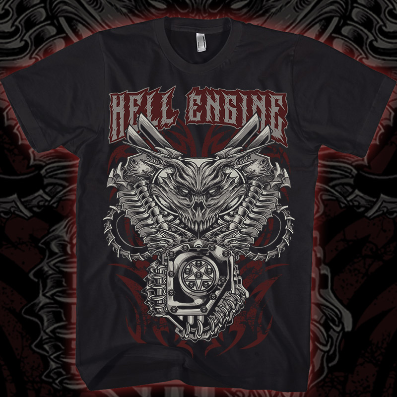 Hell Engine T-shirt design Template with Adobe Illustrator, the file is Ai separated Layers and Eps. 3 colors can be used for digital printing and screen printing.