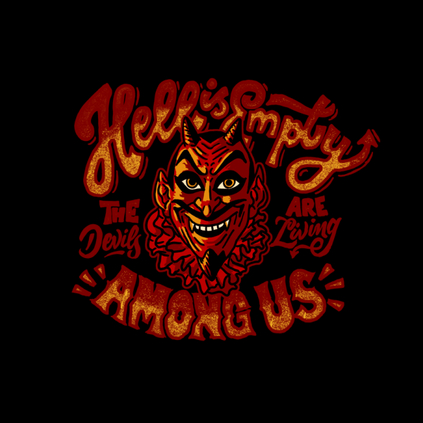 This design “ hell is empty ” is made in Adobe Photoshop is ready for print.
