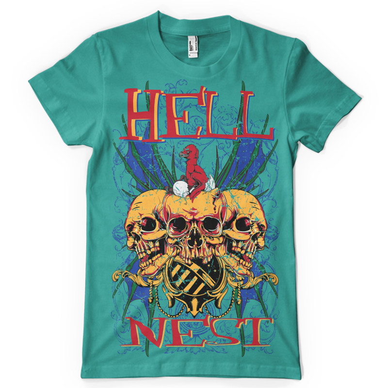 Hell nest t-shirt print features a detailed design available for Adobe Illustrator, Adobe Photoshop and Corel Draw and can be used for digital printing and screenprinting . Ready to print or use in anything you want.