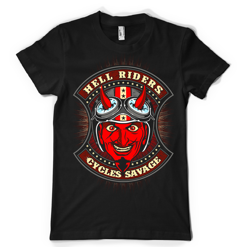 Hell Riders Devil design features a devil motor club detailed screen print now available for Adobe Illustrator, and Corel Draw and can be used for digital printing and screenprinting.