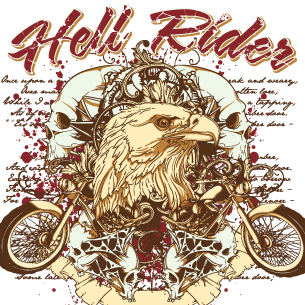 Hell riders design template in vector format, featuring detailed eagle and bikes now available for Adobe Illustrator, Adobe Photoshop and Corel Draw and can be used for digital printing and screenprinting .