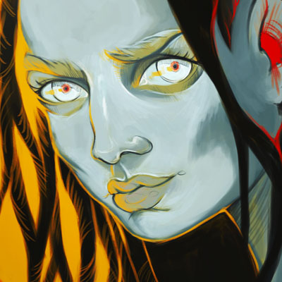 Hell- design featuring detailed profile portrait of a girl. This illustration was made in Photoshop, the source file is avaible in PNG format and can be used for screenprinting , digital print and tshirt design.