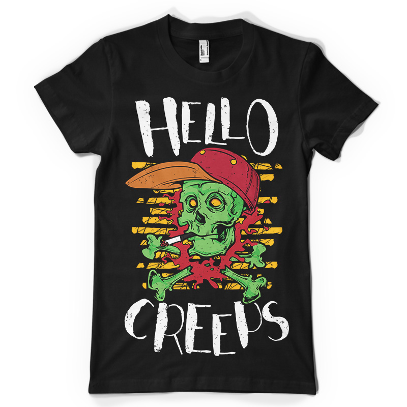 "Hello Creeps!" design is available in EPS, SVG and PNG. EPS & SVG files are well organised with every element on it's own layer. PNG file is with transparency. Can be used for digital printing and screenprinting.