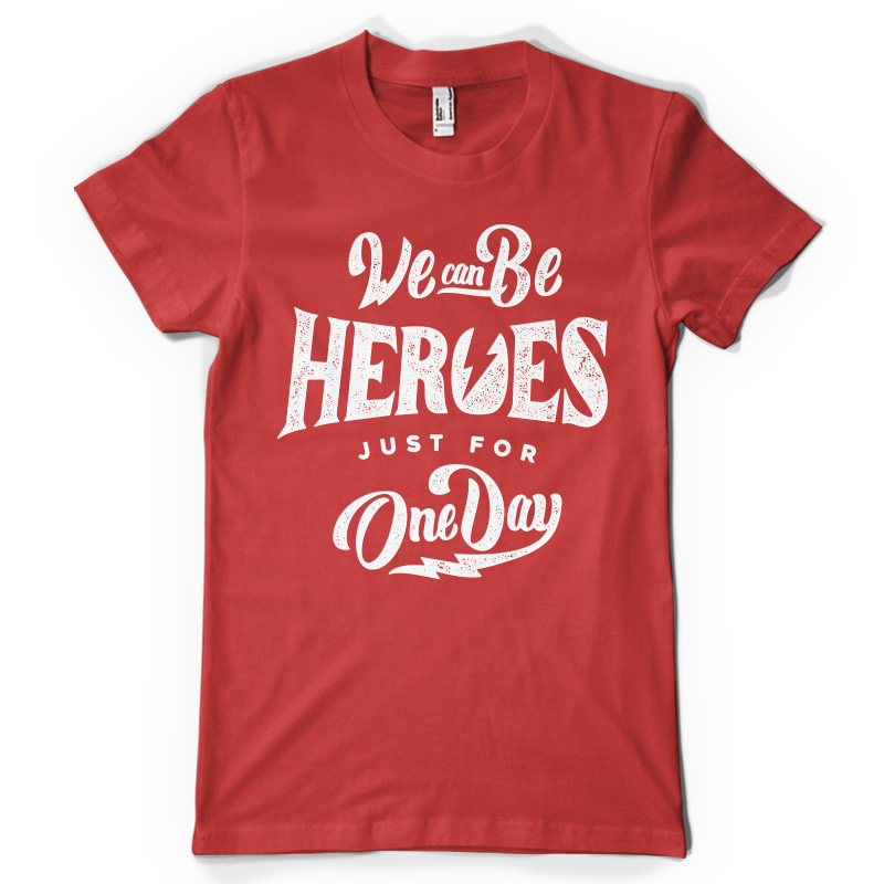 "Heroes" T-shirt design featuring typography style quote, with distressed details. The files available are suitable for Adobe Illustrator and Adobe Photoshop and can be used for digital printing and screenprinting.