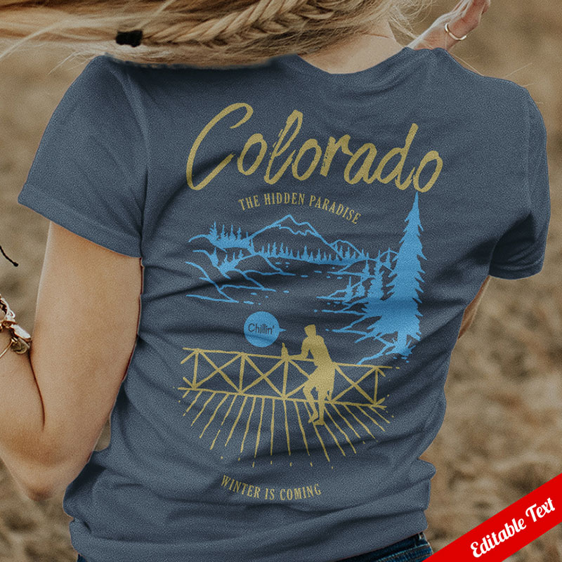 Vector illustration of a man standing and chill on beautiful cabin on mountain. Ready to print on t-shirt.