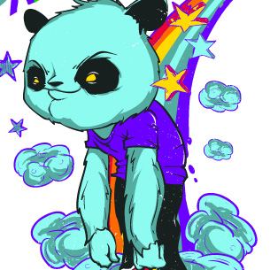 High Panda graphic design template in vector format, featuring detailed smoked panda now available for Adobe Illustrator, Adobe Photoshop and Corel Draw and can be used for digital printing and screenprinting .