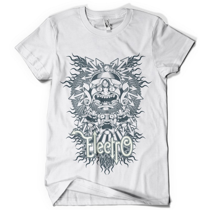 High voltage digital design template in vector format, featuring detailed dragon mask now available for Adobe Illustrator, Adobe Photoshop and Corel Draw and can be used for digital printing and screenprinting .