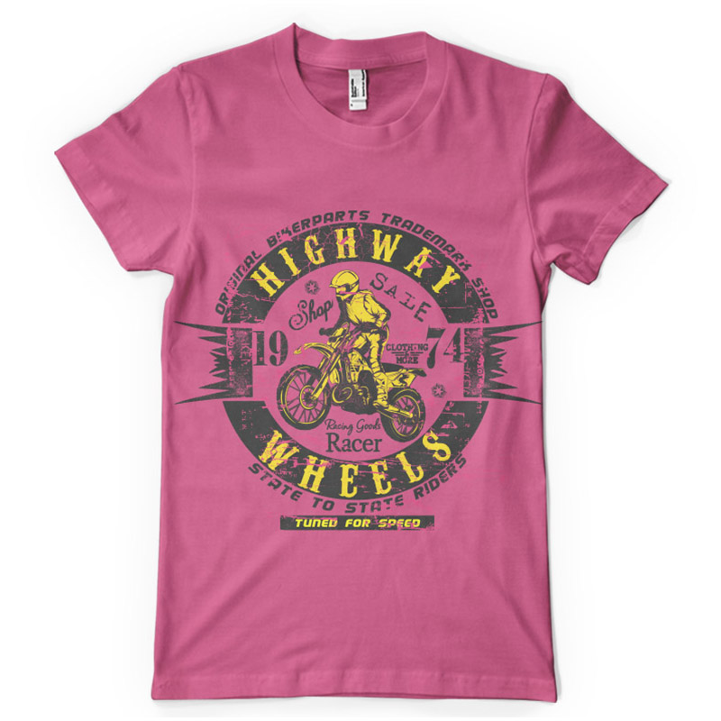 Highway wheels print features a detailed design available for Adobe Illustrator, Adobe Photoshop and Corel Draw and can be used for digital printing and screenprinting . Ready to print or use in anything you want.