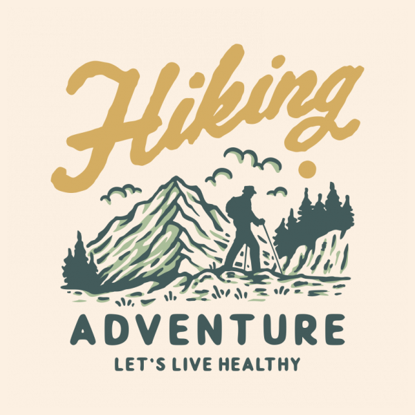 "Hiking Adventure" based on vector design. This artwork is in AI, EPS, PNG and PDF files, ready for print. Separate color based on layer, it can be used for digital printing and screen printing, and can also be used for stickers, logos, poster, wallpapers.thanks and enjoy !!
